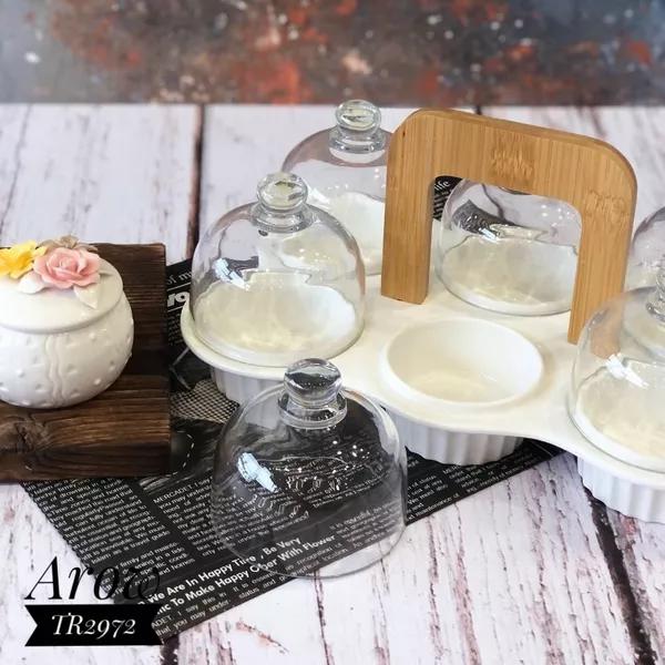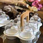 ♦ 6 عدد درب بلوری شفاف و یک دسته بامبو مقاوم برای جابجایی آسان میباشد