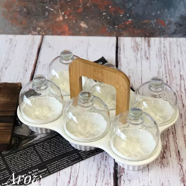 اردوخوری ۷ پارچه Arow ترکیه کد TR-2729 از جنس پرسلن مرغوب با طراحی خاص و کاربردی ساخته شده است. این ست شامل 1 عدد ظرف پرسلن شش خانه با 6 عدد درب بلوری شفاف و یک دسته بامبو مقاوم برای جابجایی آسان میباشد.