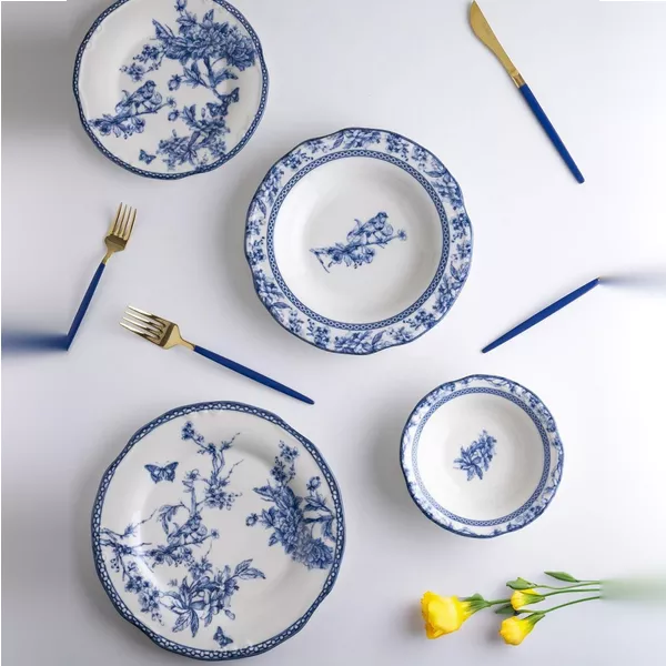 سرویس غذاخوری 24 پارچه missbetty مدل Blue Life Tiffany ساخت ترکیه، جنس پرسلن با کیفیت، قابل شستشو در ماشین ظرفشویی، فاقد مواد مضر و مناسب پذیرایی شیک و روزمره. خرید سرویس غذاخوری طرح آبی اصیل و مدرن از ماوی هوم جلفا